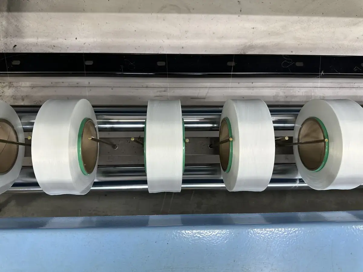 Spandex covered yarn production using polyester or nylon filament in the 70D–600D range can be carried out on HKV141D. The spandex covering machine supports both single and double covering processes. It allows manufacturers to produce covered yarn suitable for a variety of elastic textile applications.