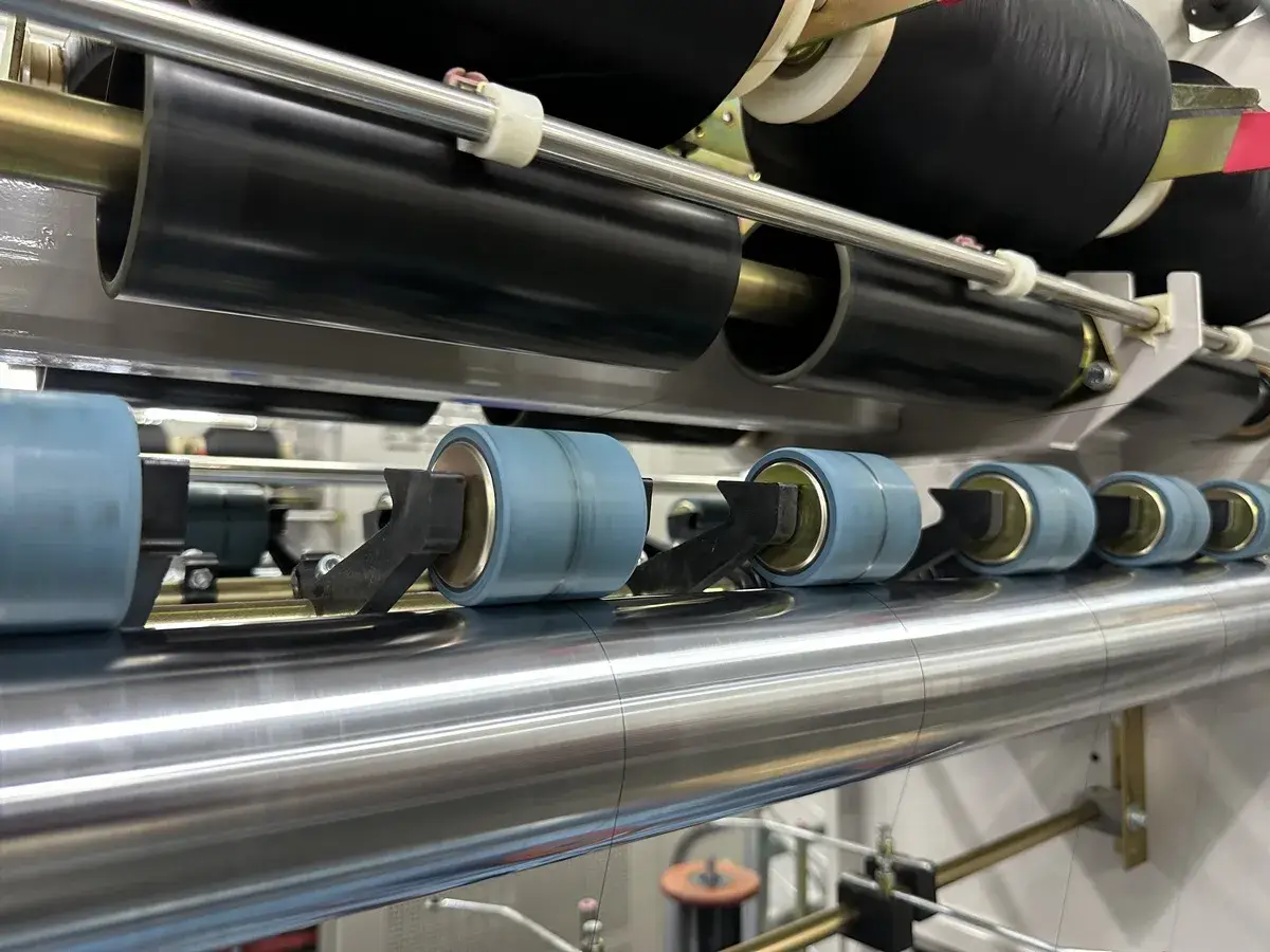 Spandex covered yarn production using polyester or nylon filament in the 70D–600D range can be carried out on HKV141D. The spandex covering machine supports both single and double covering processes. It allows manufacturers to produce covered yarn suitable for a variety of elastic textile applications.
