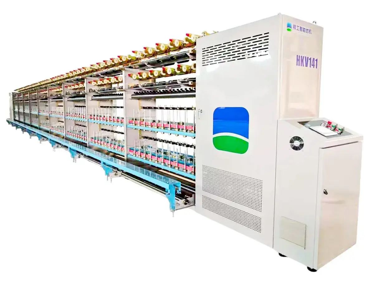 HKV141B is used for double covering production with polyester or nylon filament yarns in the 20D–100D range as the covering material. The yarn covering machine produces double-covered yarn widely used in apparel, knitted fabrics, and elastic textile materials.