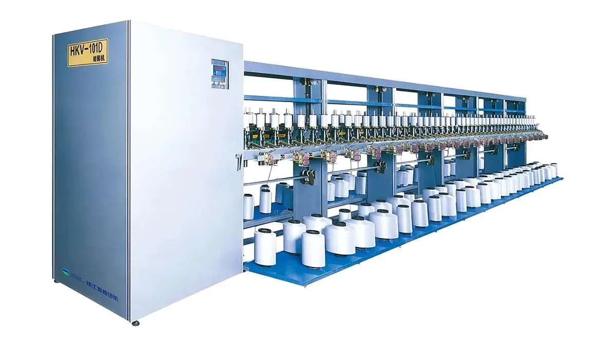 HKV101D is used as an upstream winding machine for yarn covering machines and fancy yarn twisting machines. It is suitable for winding yarn materials including chemical fibers and blended yarns into packages for subsequent processing. It uses a computerized control system, making operation straightforward while maintaining high winding efficiency and a compact machine footprint.